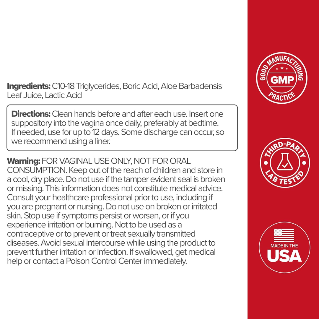 Here's the simple plan: Clean your hands, and insert one suppository just before bed (so it stays put!). We recommend a liner, as some watery discharge is totally normal. It’s a sign the suppository is dissolving and flushing out the imbalance.